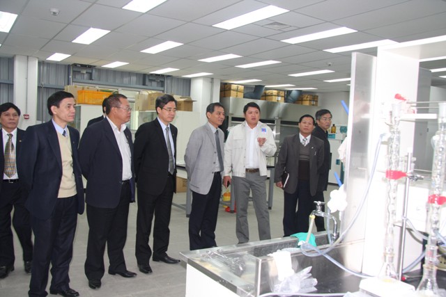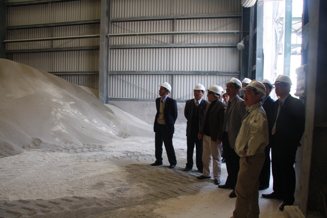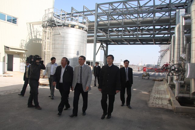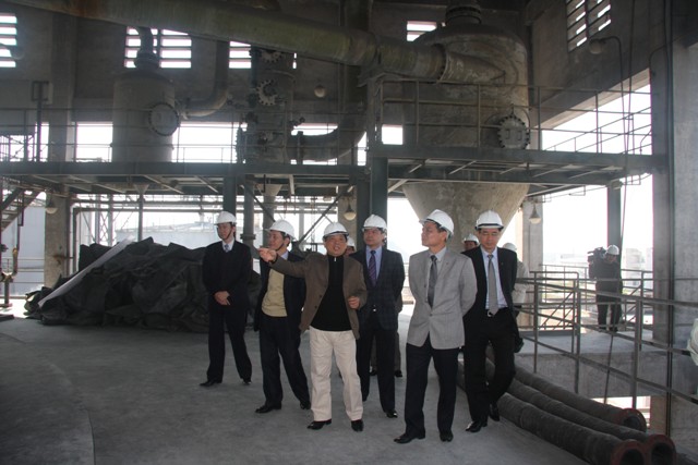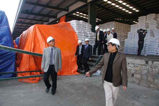 | Đồng chí Bí thư Đảng ủy Khối và Đoàn đi thăm quy trình sản xuất của Công ty TNHH MTV DAP-VINACHEM |