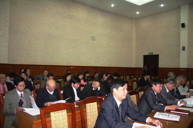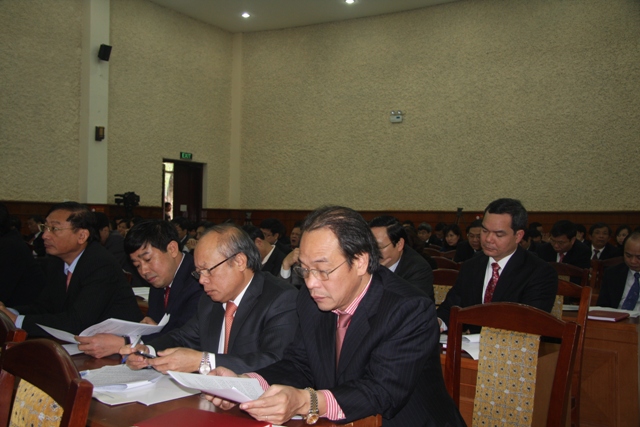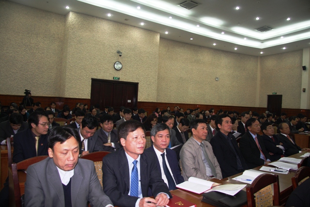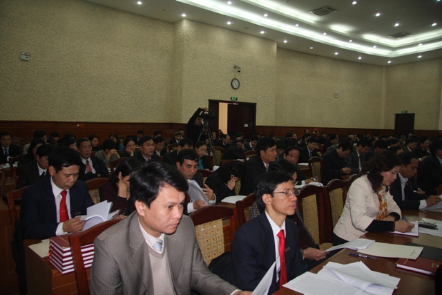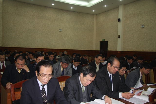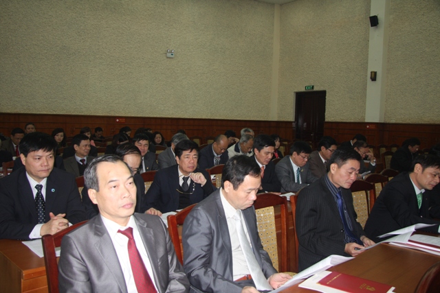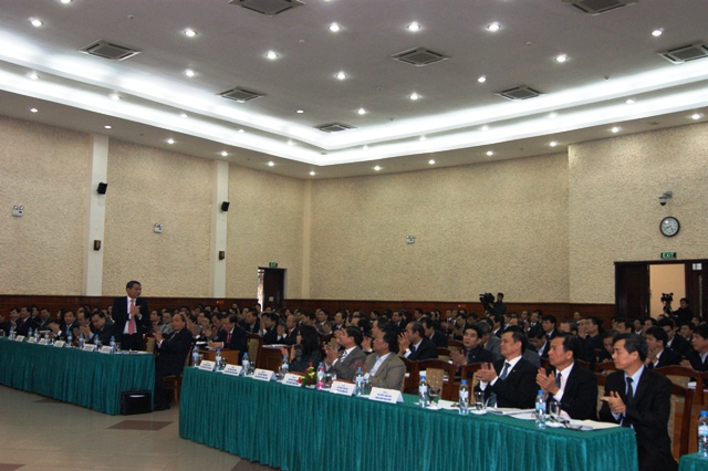 Đồng chí Nguyễn Quang Dương, Phó Bí thư Đảng ủy Khối DNTW trình bày báo cáo tổng kết công tác năm 2011, triển khai nhiệm vụ năm 2012 của Đảng bộ Khối