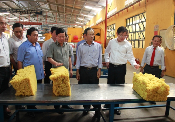 Đoàn cũng đã đến thăm nhà máy, dây chuyền chế biến mủ cốm, mô hình xử lý nước thải, sản xuất bao bì, tem, nhãn tại Nhà máy Chế biến Trung tâm thuộc Công ty Cao su Phú Riềng; thăm vườn cây kinh doanh, vườn cây kiến thiết cơ bản và mô hình trồng xen canh tại tổ 12 - Nông trường Phú Riềng đỏ. Thăm và làm việc với Công ty Cổ phần Cao su kỹ thuật Đồng Phú - Công ty con của Công ty CP Cao su Đồng Phú (thành viên của Tập đoàn CN Cao su Việt Nam). Đây là đơn vị đầu tiên trong ngành cao su sản xuất sản phẩm Foam - Nệm - Gối từ 100% cao su thiên nhiên. Với dây chuyền sản xuất và công nghệ hiện đại của Malaysia, Cộng hòa Liên bang Đức, sản phẩm đảm bảo tuyệt đối về chất lượng cũng như an toàn cho sức khỏe của người tiêu dùng.