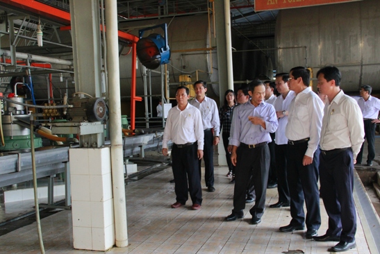* Đoàn công tác đến thăm nhà máy, dây chuyền chế biến mủ cốm, mô hình xử lý nước thải, sản xuất bao bì, tem, nhãn tại Nhà máy Chế biến Trung tâm thuộc Công ty Cao su Phú Riềng: