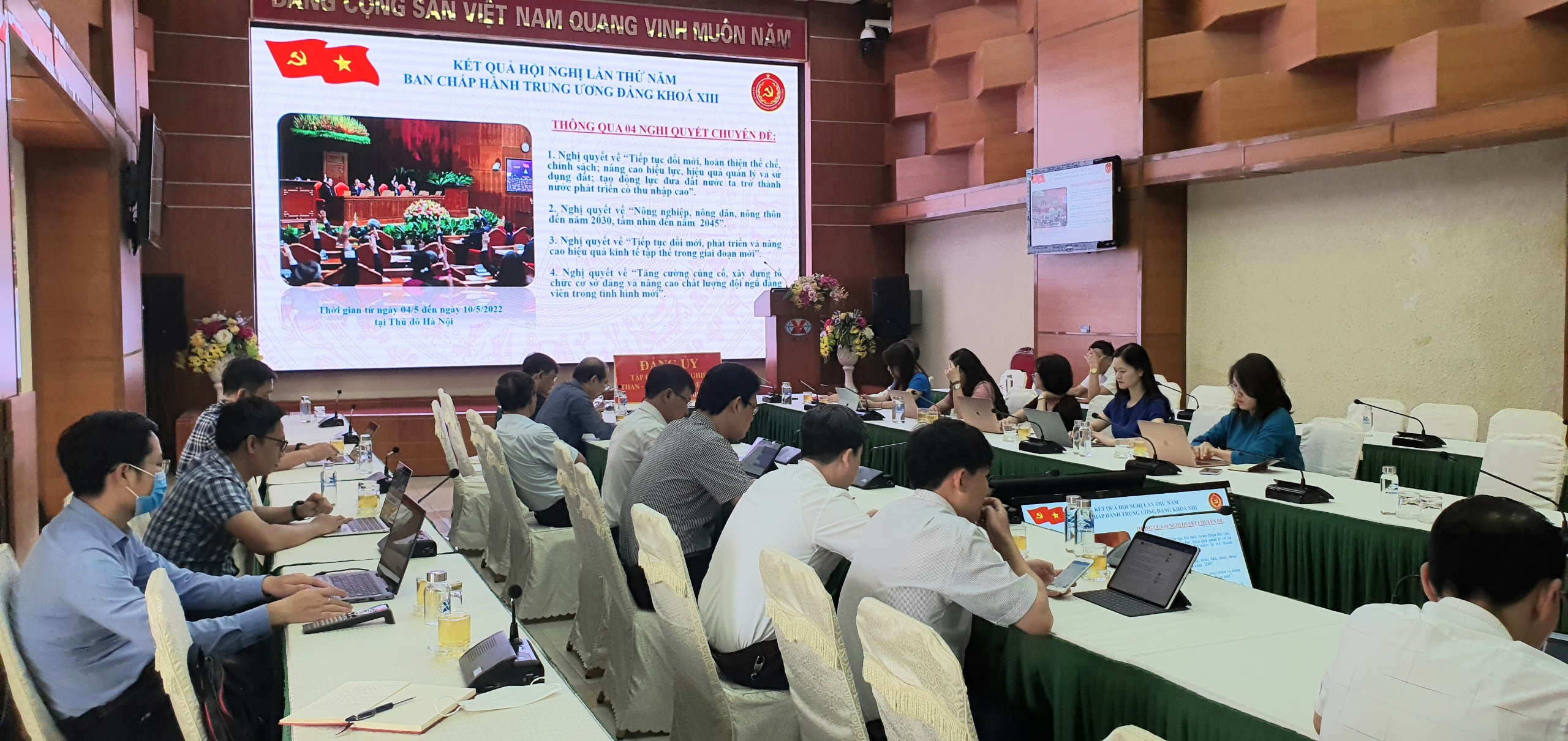 Tại Hội nghị, đồng chí Nguyễn Long Hải, Ủy viên dự khuyết BCH Trung ương Đảng, Bí thư Đảng ủy Khối đã thông báo nhanh kết quả Hội nghị lần thứ năm BCH Trung ương Đảng khóa XIII. Đồng chí cho biết: Hội nghị lần thứ năm BCH Trung ương Đảng khóa XIII họp tại Hà Nội từ ngày 04-10/5/2022 đã thành công tốt đẹp. Ban Chấp hành Trung ương Đảng xác đinh một số nhiệm vụ, giải pháp: (1) Tạo sự thống nhất cao trong nhận thức về quản lý và sử dụng đất trong nền kinh tế thị trường định hướng xã hội chủ nghĩa; (2) Hoàn thiện thể chế, chính sách quản lý và sử dụng đất đồng bộ với thể chế phát triển nền kinh tế thị trường định hướng xã hội chủ nghĩa; (3) Đẩy mạnh cải cách hành chính, chuyển đổi số và nâng cao năng lực quản lý nhà nước về đất đai; (4) Đổi mới, tăng cường công tác thanh tra, kiểm tra, giám sát xử lý vi phạm; giải quyết tranh chấp, khiếu nại tố cáo liên quan đến đất đai; siết chặt kỷ luật, kỷ cương, phòng, chống tham nhũng; (5) Tập trung giải quyết về cơ bản các tồn tại, vướng mắc kéo dài liên quan đến quản lý và sử dụng đất; (6) Tăng cường sự lãnh đạo của Đảng, phát huy vai trò của Mặt trận Tổ quốc Việt Nam; các tổ chức chính trị - xã hội và nhân dân trong quản lý và sử dụng đất.