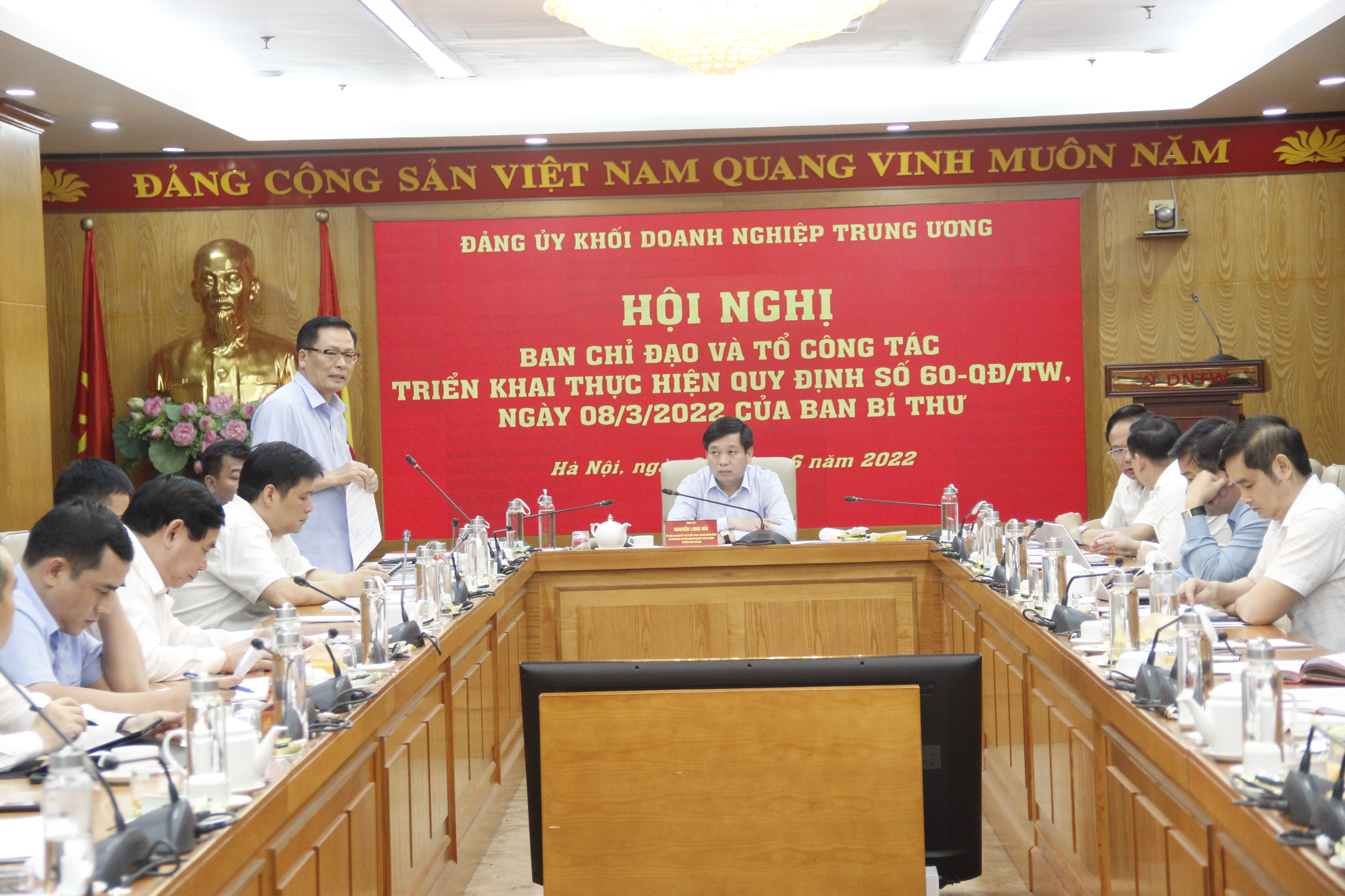 Ngày 21/6, Đảng ủy Khối Doanh nghiệp Trung ương tổ chức Hội nghị Ban Chỉ đạo và Tổ công tác triển khai thực hiện Quy định số 60-QĐ/TW, ngày 08/3/2022 của Ban Bí thư. Đồng chí Nguyễn Long Hải, Ủy viên dự khuyết BCH Trung ương Đảng, Bí thư Đảng ủy Khối, Trưởng Ban Chỉ đạo chủ trì Hội nghị.