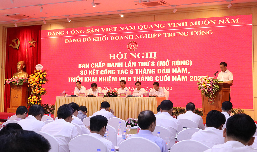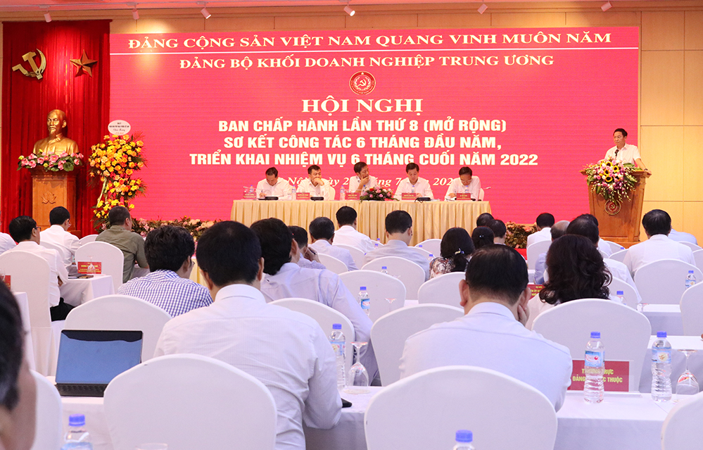 Ngày 20/07, tại Hà Nội, Đảng bộ Khối Doanh nghiệp Trung ương tổ chức Hội nghị Ban Chấp hành lần thứ 8 (mở rộng) nhằm sơ kết công tác 6 tháng đầu năm, triển khai nhiệm vụ 6 tháng cuối năm 2022.