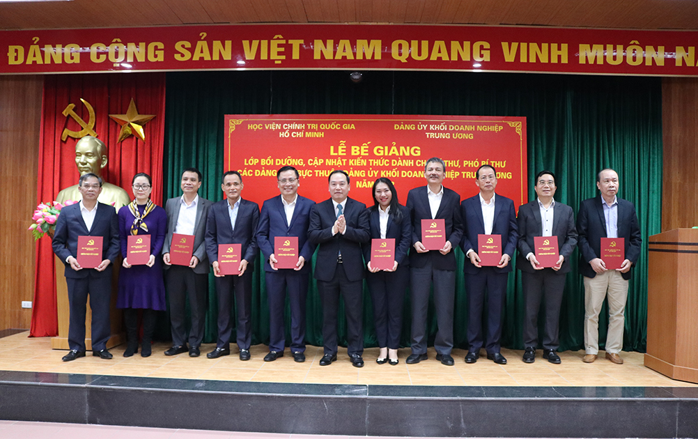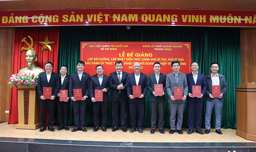 Tại buổi Lễ bế giảng, Đảng uỷ Khối Doanh nghiệp Trung ương và Học viện Chính trị quốc gia Hồ Chí Minh trao Chứng nhận cho 83 đồng chí học viên là các đồng chí bí thư, phó bí thư đảng ủy trực thuộc Khối được công nhận tốt nghiệp.
