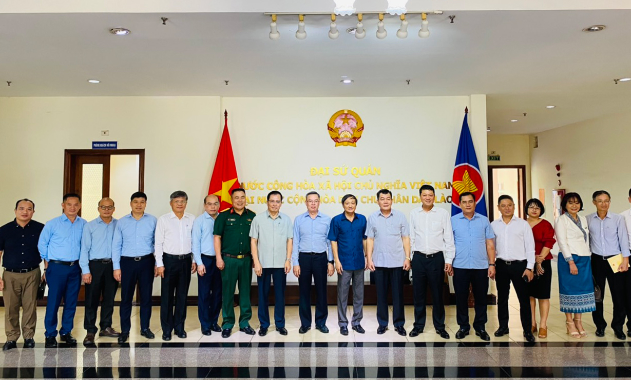 | Đoàn công tác của Đảng uỷ Khối Doanh nghiệp Trung ương chụp ảnh lưu niệm với Phó Thủ tướng nước CHDCND Lào. |