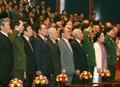 Các đồng chí lãnh đạo Đảng, Nhà nước Lễ kỷ niệm 40 năm ngày ký Hiệp định Paris về chấm dứt chiến tranh, lập lại hòa bình ở Việt Nam - Ảnh: VGP/Nhật Bắc |