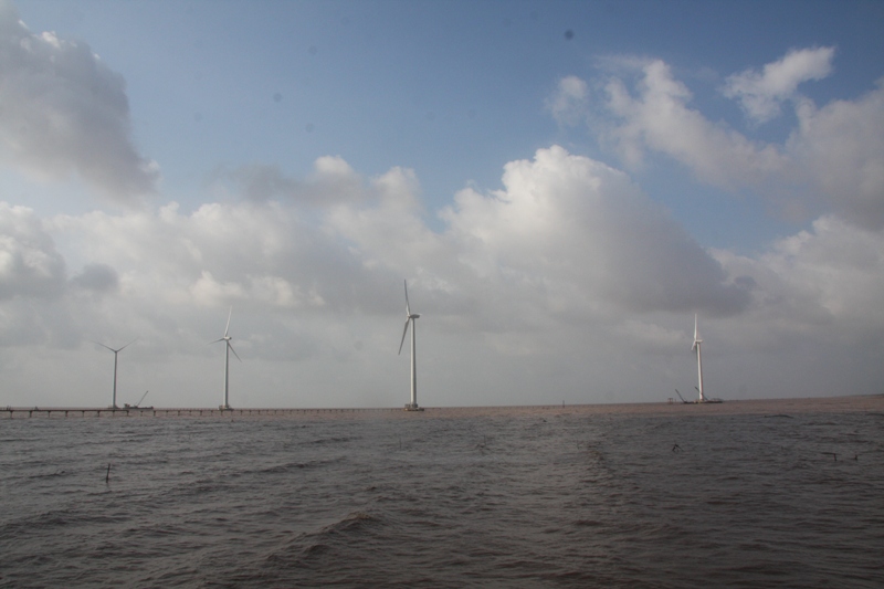 | Hình ảnh cột điện gió vươn cao giữa trời nước Bạc Liêu |
