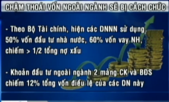Còn theo ông Lê Minh Khái, Phó tổng Kiểm toán Nhà nước, khoản đầu tư ngoài ngành của các doanh nghiệp Nhà nước chỉ tính riêng 2 mảng chứng khoán và bất động sản đã chiếm tới 12% tổng vốn điều lệ của các doanh nghiệp này.