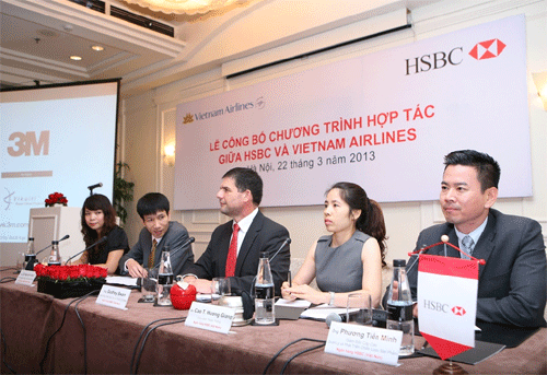 Theo đó, từ ngày 15/3/2013, chủ thẻ của HSBC có thể đổi điểm thành dặm bay, tận hưởng chương trình giảm giá thường xuyên cho các chuyến bay của Vietnam Airlines đến nhiều địa điểm khác nhau trên toàn khu vực châu Á và chương trình khuyến mại du lịch khi sử dụng thẻ tín dụng của HSBC. Đây là lần đầu tiên một ngân hàng nước ngoài hợp tác với hãng hàng không quốc gia Việt Nam nhằm mang đến lợi ích tối đa cho khách hàng tại thị trường này.