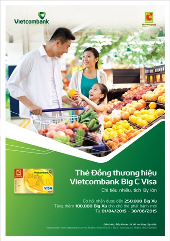 Kể từ ngày 01/04/2015 đến hết ngày 30/06/2015, Vietcombank triển khai chương trình ưu đãi mua sắm dành cho tất cả chủ thẻ Vietcombank Big C Visa.