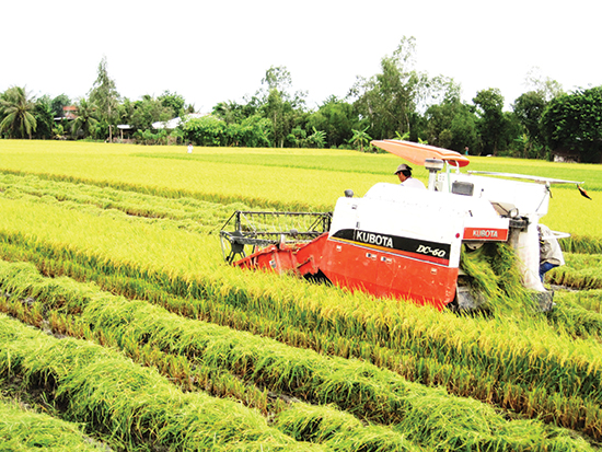 Trong gần một tuần cuối tháng 9 và đầu tháng 10-2017, đồng bằng sông Cửu Long (ÐBSCL) liên tục có mưa, gây khó khăn cho nông dân thu hoạch lúa thu - đông (lúa vụ 3 trong năm). Tuy nhiên, lúa vừa thu hoạch được thương lái tìm đến mua nhanh. "Gia đình tôi vừa thu hoạch 50 giạ lúa. Thương lái mua tại nhà với giá 104 nghìn đồng/giạ (tương đương 5.200 đồng/kg). Giá bán này cao hơn 100 đồng/kg so với vụ hè thu vừa rồi. Với mức giá này, nông dân trồng lúa khá yên tâm để sản xuất", anh Trần Văn Hết, nông dân huyện Tam Bình (Vĩnh Long) cho biết. Có thể nói, giá lúa từ đầu năm 2017 đến nay ổn định ở mức cao, nhờ đầu ra ổn định.