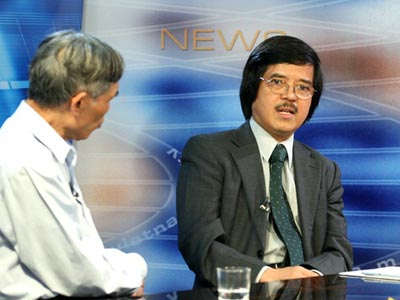 | Giáo sư Trần Văn Thọ trong một cuộc trực tuyến với nguyên Bộ trưởng Thương mại Trương Đình Tuyển trên VietNamNet |