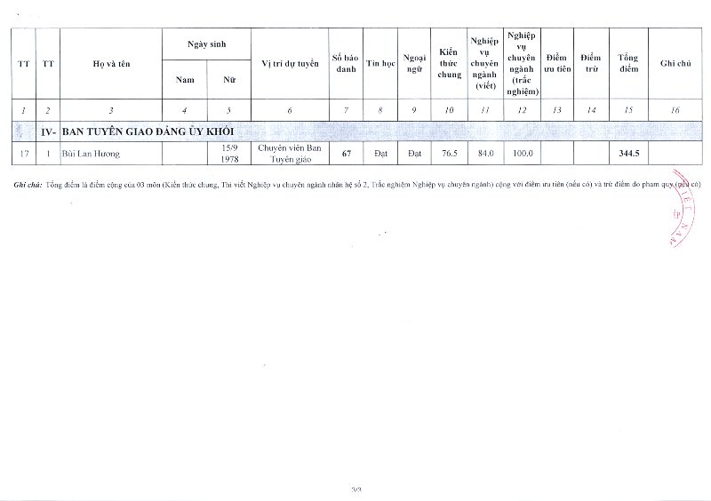 Thông báo bổ sung về việc sơ tuyển cán bộ, công chức Cơ quan Đảng ủy Khối năm 2014