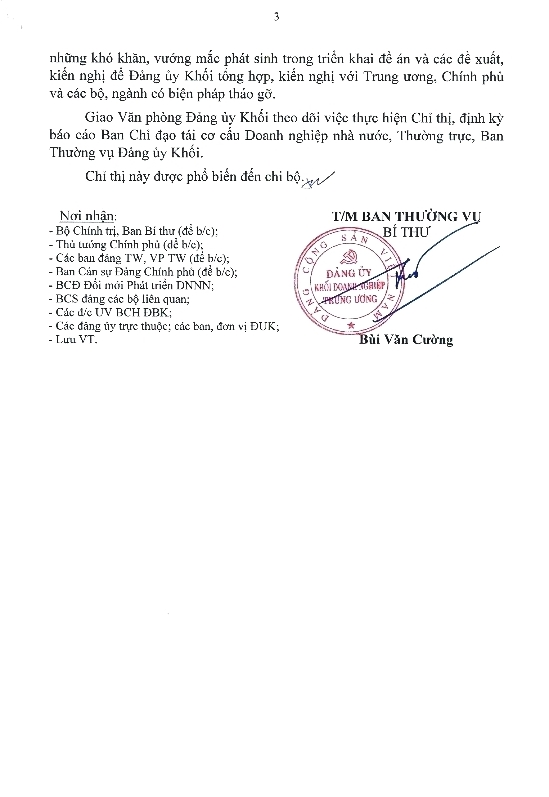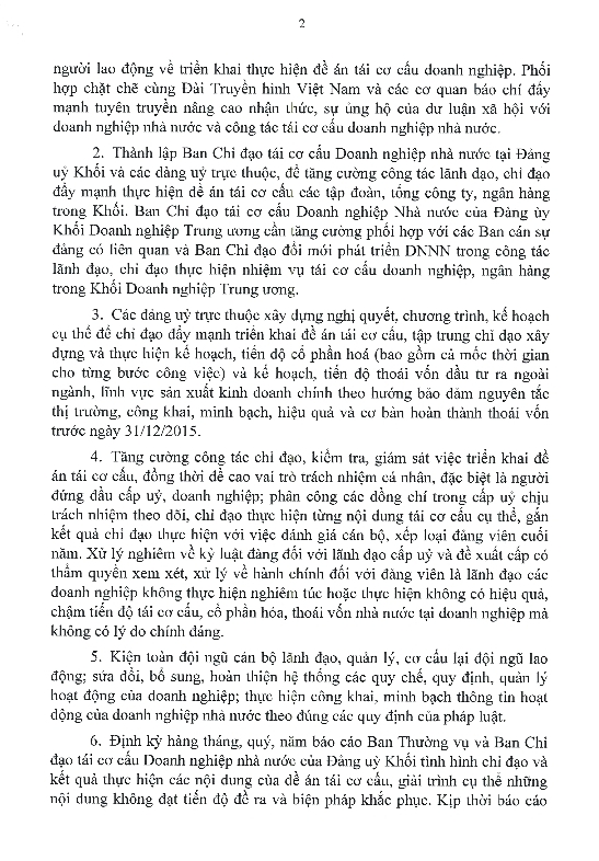 Chỉ thị của Ban Thường vụ Đảng ủy Khối về tăng cường sự lãnh đạo của Đảng trong đẩy mạnh tái cơ cấu doanh nghiệp nhà nước Khối Doanh nghiệp Trung ương giai đoạn 2014 - 2015