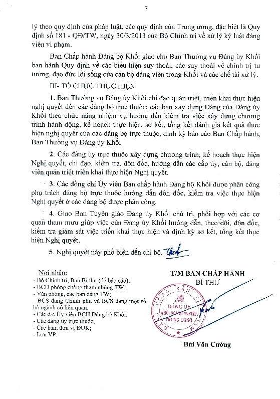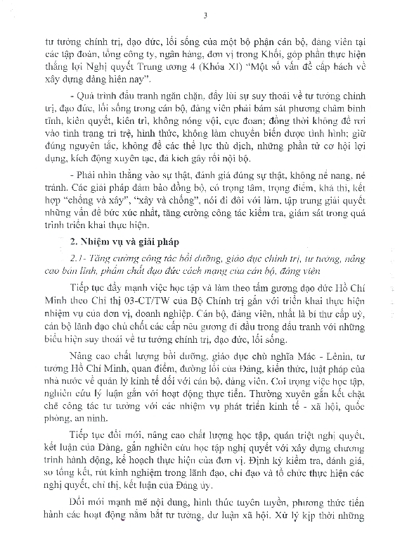 Nghị quyết của Ban Chấp hành Đảng bộ Khối về Đấu tranh, ngăn chặn, đẩy lùi tình trạng suy thoái về tư tưởng chính trị, đạo đức, lối sống của một bộ phận cán bộ, đảng viên trong Khối Doanh nghiệp Trung ương