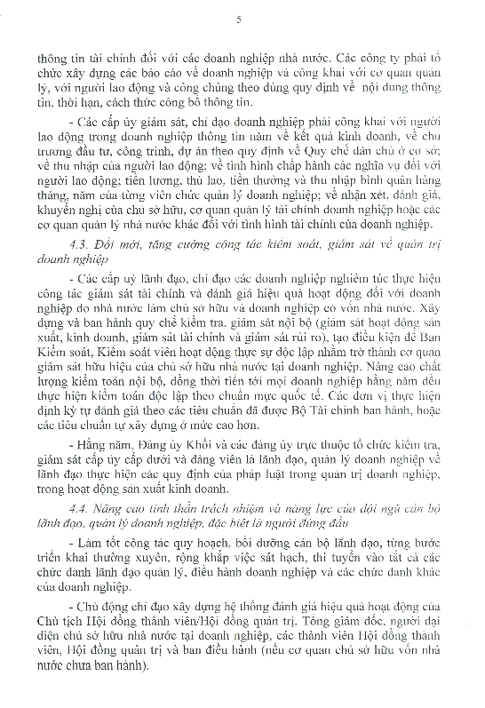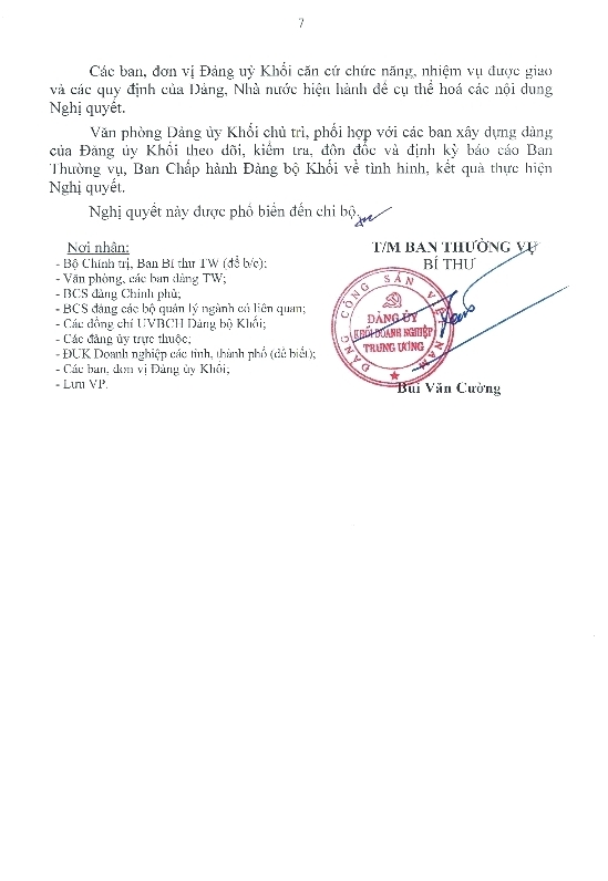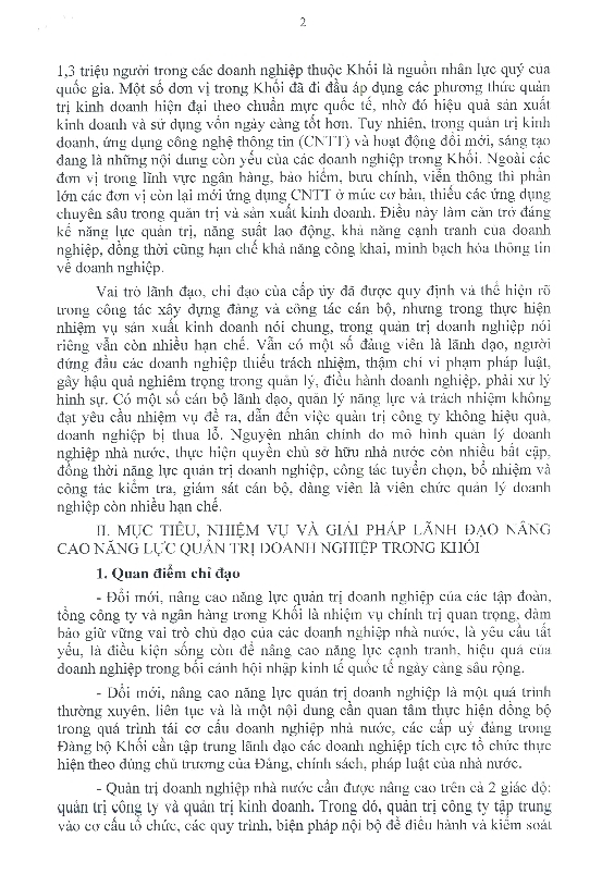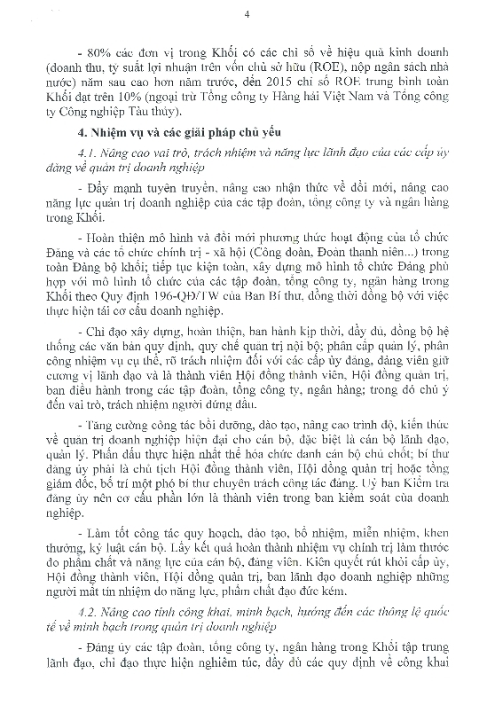 Nghị quyết của Ban Thường vụ Đảng ủy Khối Về tăng cường sự lãnh đạo của Đảng trong đổi mới, nâng cao năng lực quản trị doanh nghiệp của các tập đoàn, tổng công ty, ngân hàng trong Khối Doanh nghiệp Trung ương