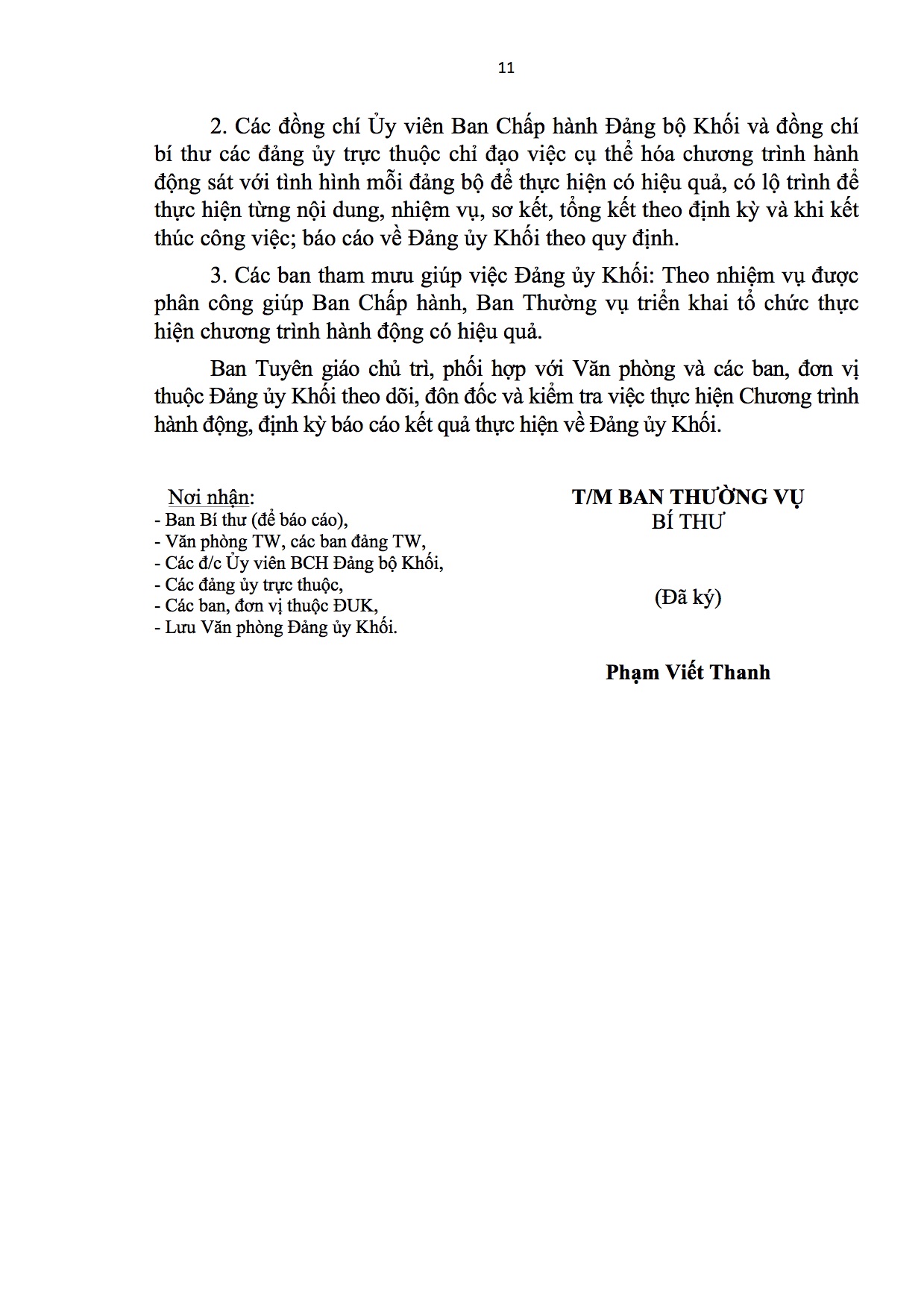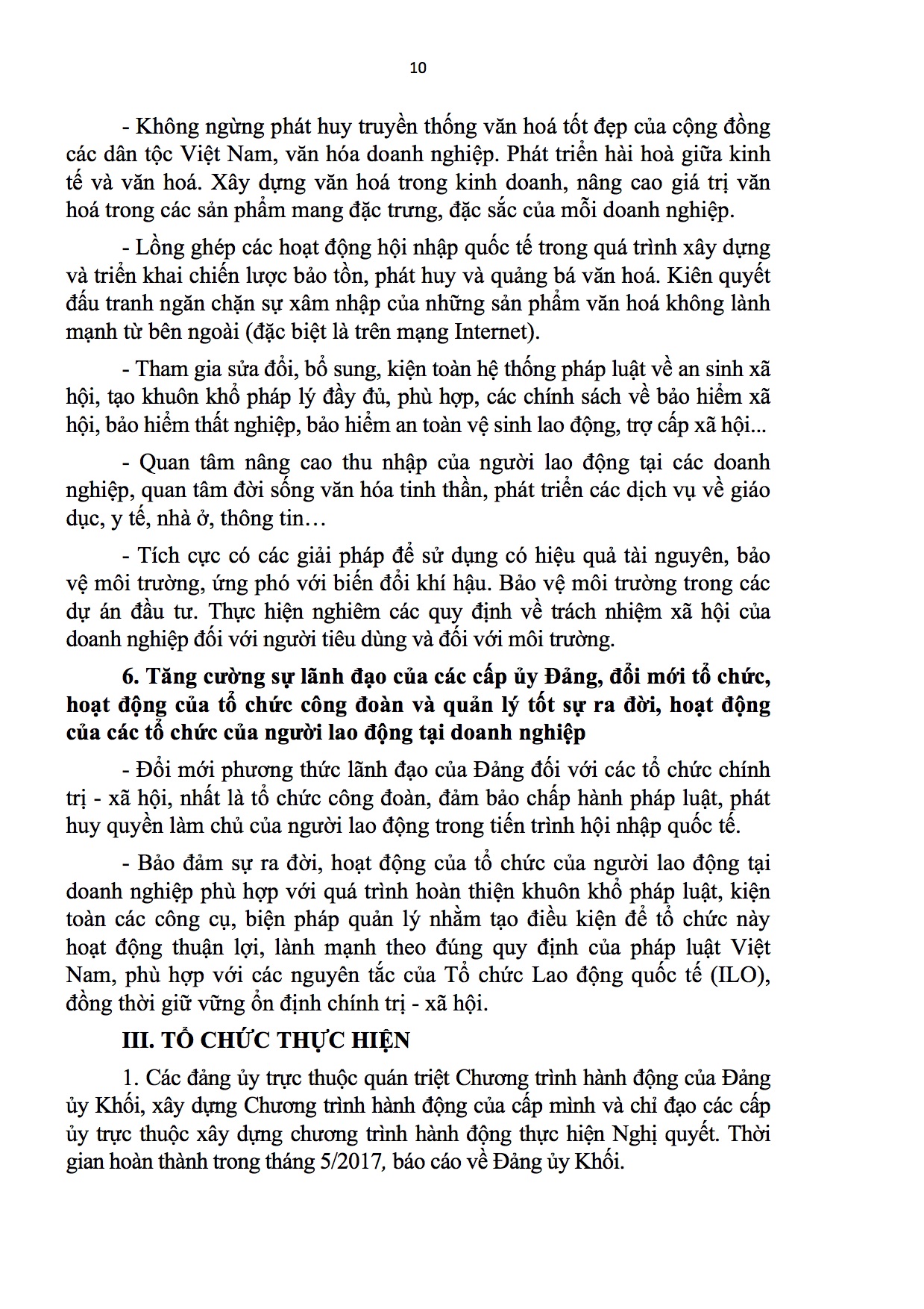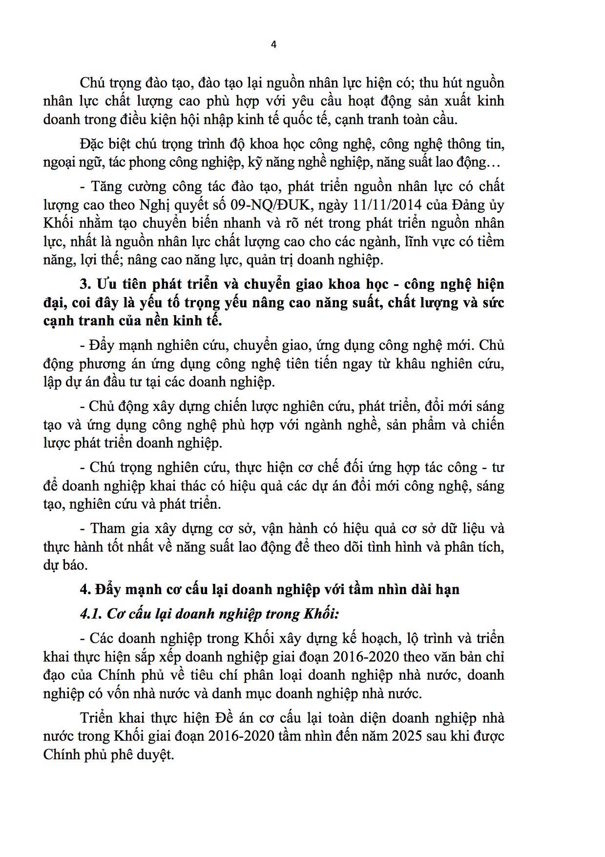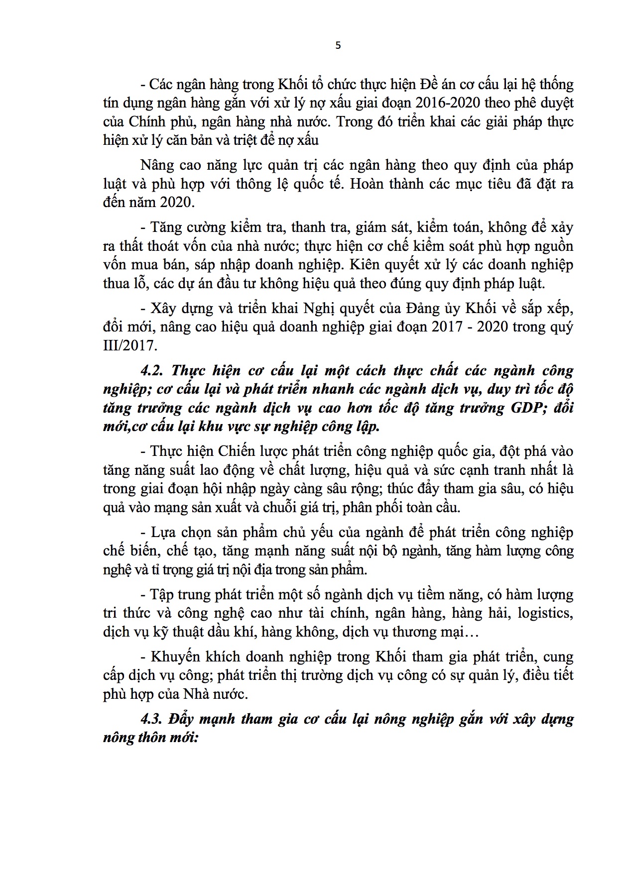 Đảng ủy Khối Doanh nghiệp Trung ương xây dựng Chương trình hành động thực hiện Nghị quyết Hội nghị lần thứ tư Ban Chấp hành Trung ương khóa XII về một số chủ trương, chính sách lớn nhằm tiếp tục đổi mới mô hình tăng trưởng, nâng cao chất lượng tăng trưởng, năng suất lao động, sức cạnh tranh của nền kinh tế và về thực hiện có hiệu quả tiến trình hội nhập kinh tế quốc tế, giữ vững ổn định chính trị - xã hội trong bối cảnh nước ta tham gia các hiệp định thương mại tự do thế hệ mới.