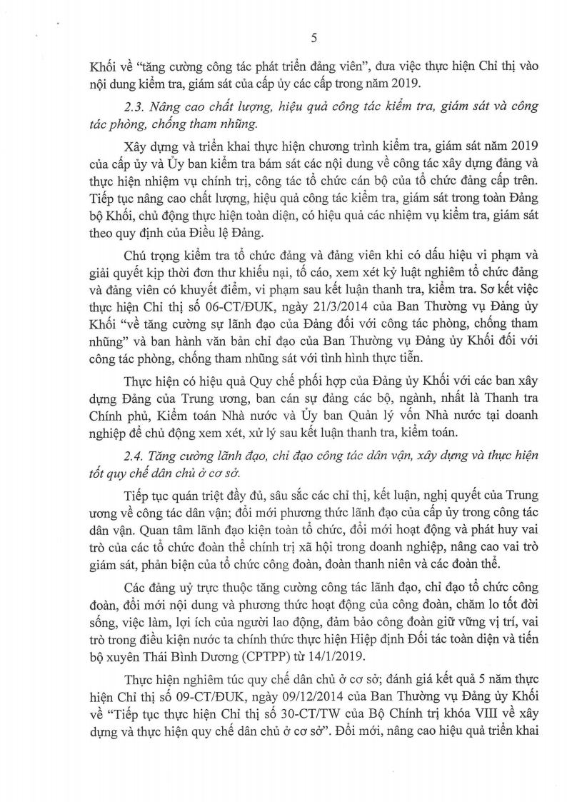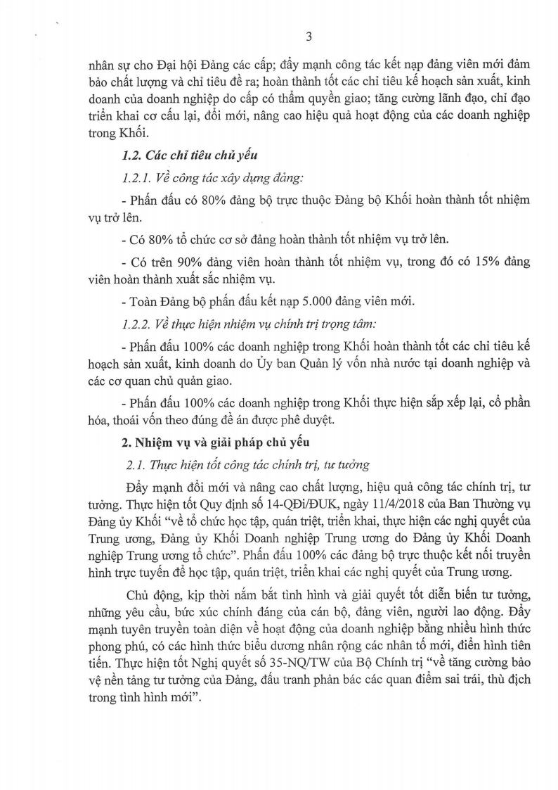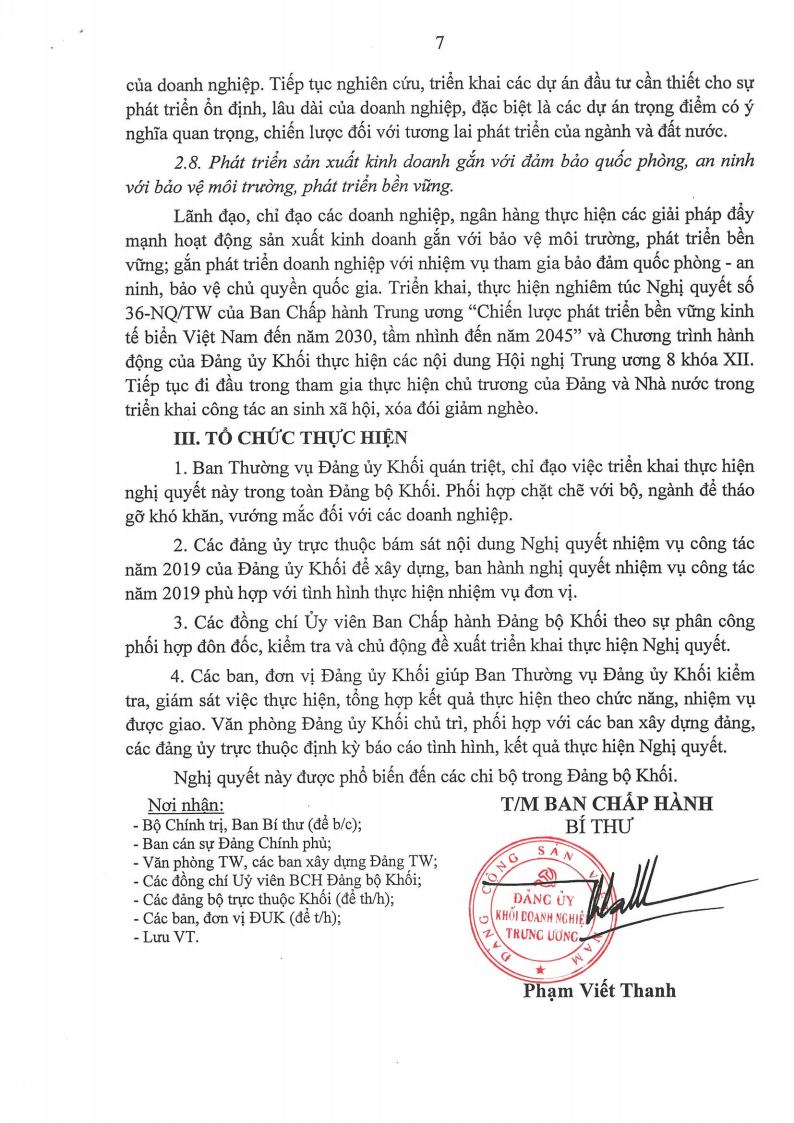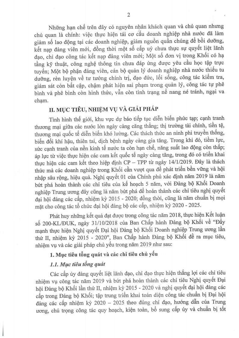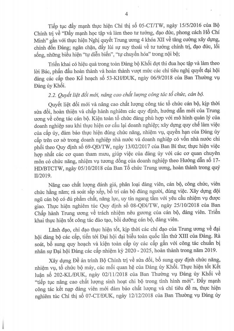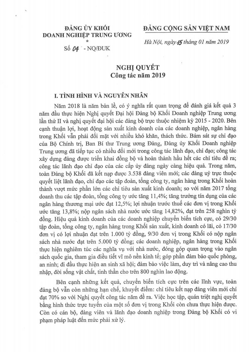 Ngày 15/1/2019, Ban Chấp hành Đảng bộ Khối Doanh nghiệp Trung ương đã ban hành Nghị quyết số 04 - NQ/ĐUK “Nghị quyết công tác năm 2019”. Toàn văn Nghị quyết như sau:
