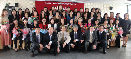 Sáng ngày 8/3, tại Hạ Long, Đảng ủy cơ quan Tập đoàn và Đảng ủy Than Quảng Ninh đã phối hợp tổ chức buổi lễ gặp mặt các cán bộ nữ làm công tác Đảng trong toàn Tập đoàn. Đến dự có Bí thư Đảng ủy, Chủ tịch HĐTV Trần Xuân Hòa, Tổng giám đốc Lê Minh Chuẩn và đồng chí Bí thư Đảng ủy Than Quảng Ninh Bùi Văn Khích.