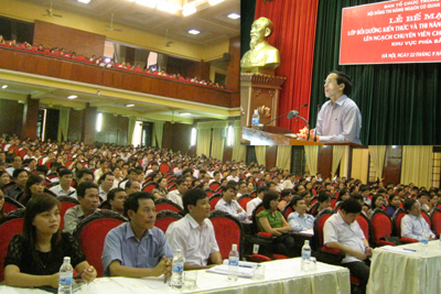 Như tin đã đưa, từ 19 đến 22-9, Hội đồng thi nâng ngạch lên chuyên viên chính khối các cơ quan đảng, đoàn thể năm 2012 tổ chức lớp bồi dưỡng kiến thức cho các cán bộ, công chức tham dự kỳ thi khu vực phía Bắc. Sáng 22-9, Hội đồng thi đã tổ chức bế mạc lớp.