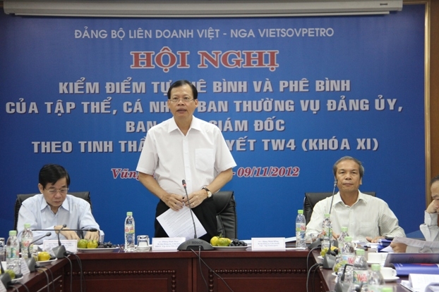 Bí thư Đảng ủy, Chủ tịch HĐTV Tập đoàn Phùng Đình Thực phát biểu chỉ đạo tại Hội nghị kiểm điểm theo tinh thần Nghị quyết Trung ương 4 của Liên doanh Việt- Nga (Vietsovpetro) ngày 8/11/2012.