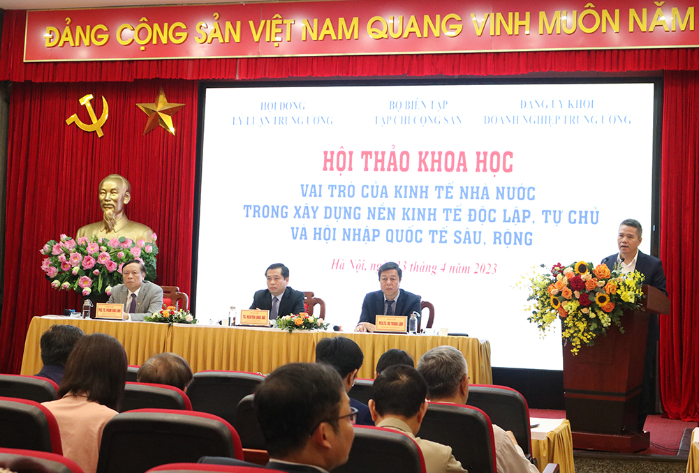 Phát biểu đề dẫn Hội thảo, đồng chí Nguyễn Long Hải, Bí thư Đảng uỷ Khối Doanh nghiệp Trung ương nêu rõ: Xây dựng nền kinh tế độc lập, tự chủ và hội nhập quốc tế là quan điểm xuyên suốt và nhất quán của Đảng và Nhà nước ta kể từ khi thực hiện công cuộc Đổi mới vào năm 1986 đến nay. Trong tiến trình xây dựng nền kinh tế độc lập, tự chủ và hội nhập quốc tế, qua các kỳ Đại hội, Đảng ta xác định kinh tế nhà nước (KTNN) giữ vị trí trọng yếu, vai trò quan trọng trong tiến trình phát triển kinh tế - xã hội của đất nước, tạo nền tảng cơ bản để phát triển mọi ngành, lĩnh vực, thành phần kinh tế và loại hình doanh nghiệp trong nền kinh tế quốc dân.