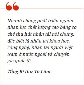 Có kế hoạch cụ thể để xây dựng nguồn nhân lực chất lượng cao. Tính toán hình thành cơ chế Kiến trúc sư trưởng hoặc Tổng công trình sư cho việc thực hiện các đề án, dự án lớn về khoa học công nghệ và chuyển đổi số mang tính liên ngành; Lập Viện quốc gia về tiêu chuẩn và kiểm định về các nghiên cứu, thử nghiệm, đánh giá, kiểm định sản phẩm và dịch vụ. Nhà nước tạo thuận lợi thành lập các viện nghiên cứu tư nhân, hỗ trợ về thủ tục, khuyến khích bằng thuế và tín dụng, được mời các chuyên gia nước ngoài đến làm việc, được tạo mọi điều kiện để hoạt động thuận lợi.